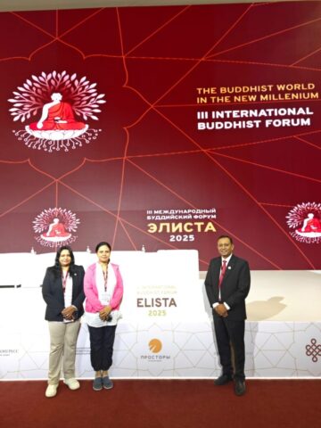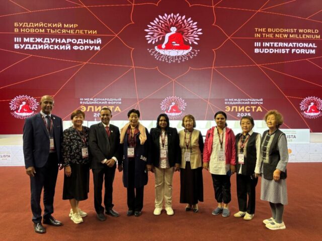 The University of Sri Jayewardenepura (USJP) proudly participated in the III International Buddhist Forum held in Elista, Republic of Kalmykia, Russia, from September 25th to 28th, 2025, under the theme “The Buddhist World in the New Millennium.” This prestigious international gathering brought together scholars, monks, and experts from around the globe to explore the contemporary relevance of Buddhism across cultural, philosophical, spiritual, and socio-economic dimensions. Representing USJP, a distinguished delegation presented a wide range of perspectives reflecting the university’s interdisciplinary strengths. Ven. Prof. Sarananda Thero spoke on “The Buddhist Culture: Literature, Art, and Architecture,” offering deep insights into the rich cultural heritage shaped by centuries of Buddhist influence. Ven. Prof. Wijithadhamma Thero, Ven. Dr. Chandasiri Thero, Prof. Shirantha Heenkenda, and Prof. Sunethra Thennakoon made valuable scholarly contributions to the conference through their published presentations. Additionally, Dr. Ruwini Dharamawardene, Director of the Centre for International Affairs at USJP, represented the university’s ongoing commitment to fostering global academic partnerships and promoting Buddhist studies at an international level. USJP’s active participation in this forum not only showcased the university’s academic and cultural contributions but also reinforced its role in the global dialogue on Buddhism’s role in the modern world.